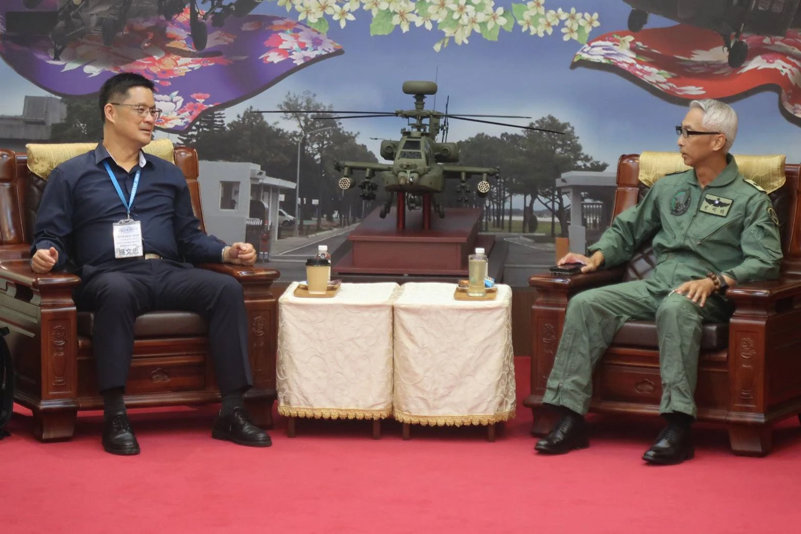 日前,時間點落在軍人節前夕,中華民國民航飛行員協會(Airline Pilots Association, Taiwan)與中華民國飛航管制員協會兩會聯合參訪阿帕契601旅,旅長曾少將親自接待雙會,民航協會理事長楊文忠與飛航管制員協會陳妍君代表兩會致贈601旅紀念品,同時向601旅部隊致上最高的敬意。